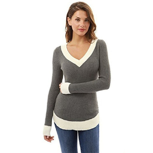 Damen V-Ausschnitt Pullover mit kontrastierenden Abschlüssen Amawinc