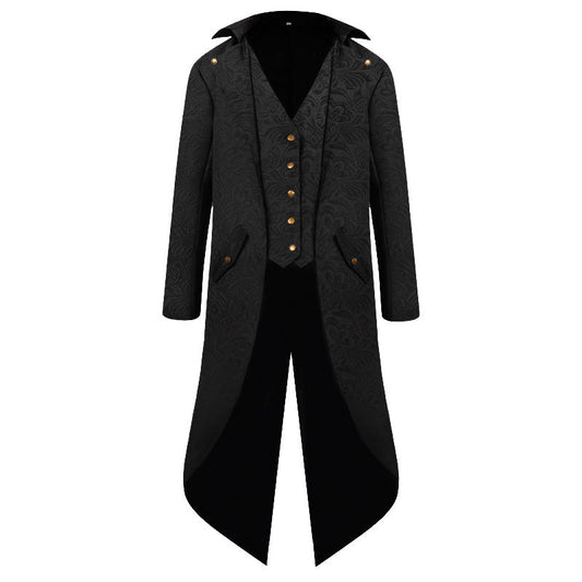 Damen viktorianischer Stehkragenmantel mit detaillierter Musterung und Kunstlederakzenten Amawinc