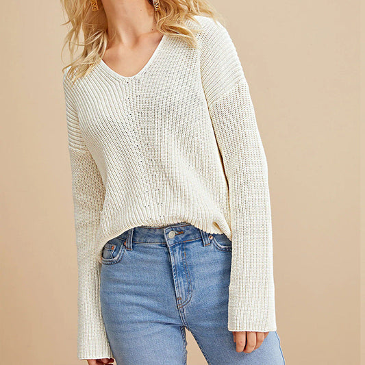 Damen V-Ausschnitt Strickpullover mit lockerer Passform und feinem Netzdesign Amawinc
