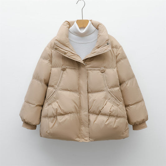 Damen voluminöse Winterjacke mit praktischen Taschen und hochschließendem Kragen Amawinc