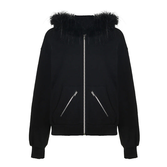 Damen warme Sweatjacke mit abnehmbarem Kunstfellkragen Amawinc