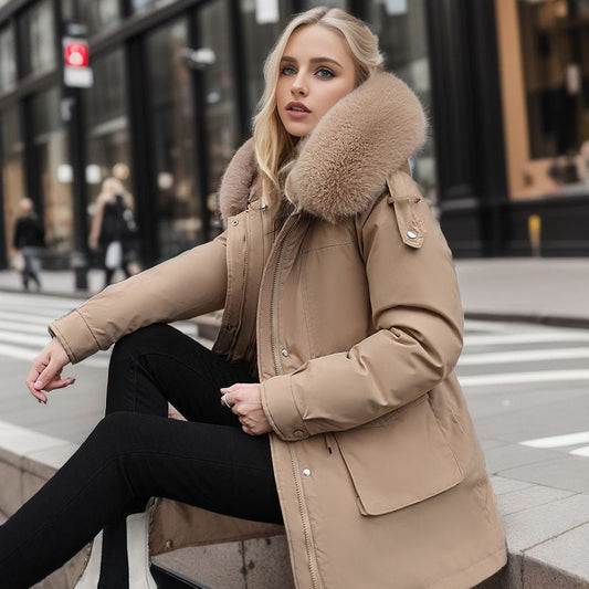 Damen warme Winterjacke mit abnehmbarem Fellkragen Amawinc