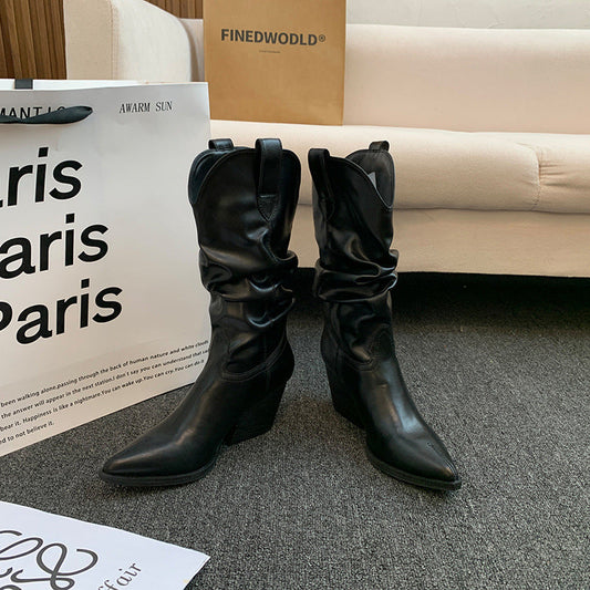 Damen Western-Stiefel mit eleganter Raffung und Absatz Amawinc