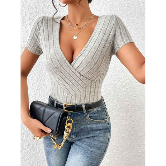 Damen Wickelbody mit dekorativem Streifenmuster Amawinc