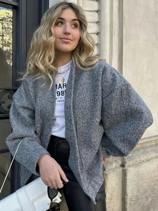 Damen-Blazerjacke mit langen Ärmeln und Taschen in lässigem Stil