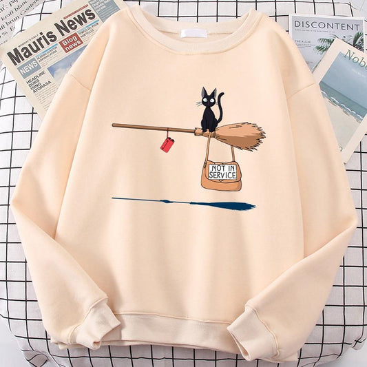 Damen-Pullover mit magischem Besen-Motiv für Katzenliebhaber