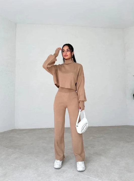 Damen-Set Elena: Rollkragenpullover, Strickhandschuhe & Hose im eleganten Stil