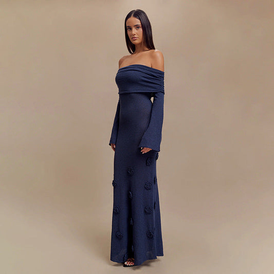 Fudus Blumiges A-Linien-Kleid mit offener Schulter