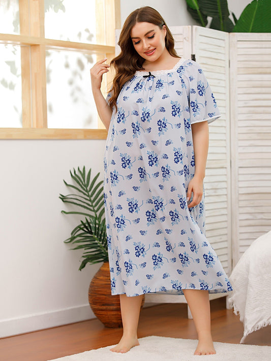 Fudus Plus Size Spitze-Detail Loungewear Kleid