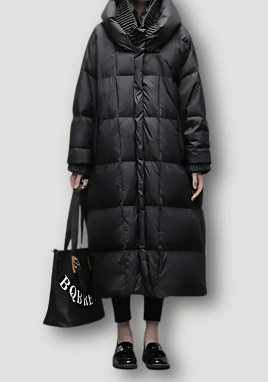 Belvia Slim Fit Long Quilted Puffer Jacket with Hood