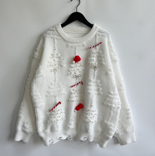Damen Weihnachts-Pullover mit festlichem Motiv und 3D-Applikationen Amawinc