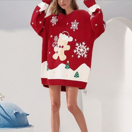 Damen Weihnachts-Pullover mit festlichem Motiv und oversized Schnitt Amawinc