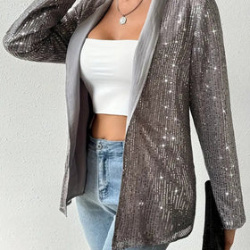 Avelena BLAZER MIT GLÄNZENDEN PAILLETTEN | AERYS: Stilvoller grauer Blazer mit strahlenden Pailletten für elegante Anlässe.