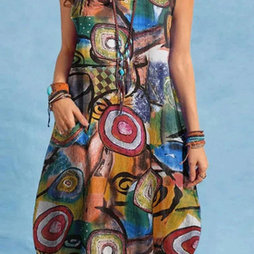 Erfassen Sie die Essenz böhmischer Freiheit mit unserem bedruckten Kleid! Müde von langweiliger Alltagsmode? Entfesseln Sie Ihren inneren Bohème-Geist in diesem bezaubernden Kleidungsstück. Entworfen für die moderne Bohème-Göttin, ist es mehr als nur Stoff und Nähte – es ist Ausdruck Ihres freien Geistes.