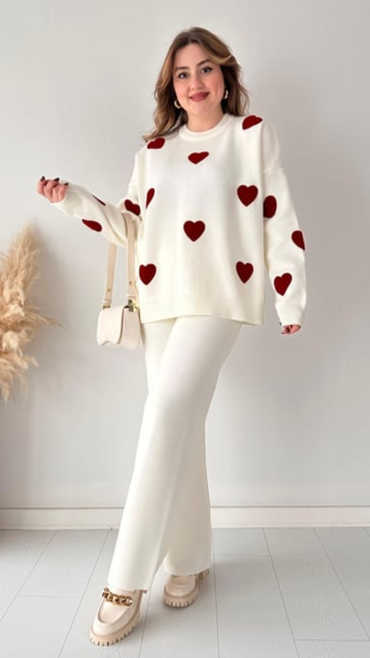 Entdecke Komfort und Stil unseres beliebten Alina-Sets aus Polar. Mit charmantem Herzprint und hochwertigen Materialien hält es warm und stylisch – zuhause oder unterwegs.