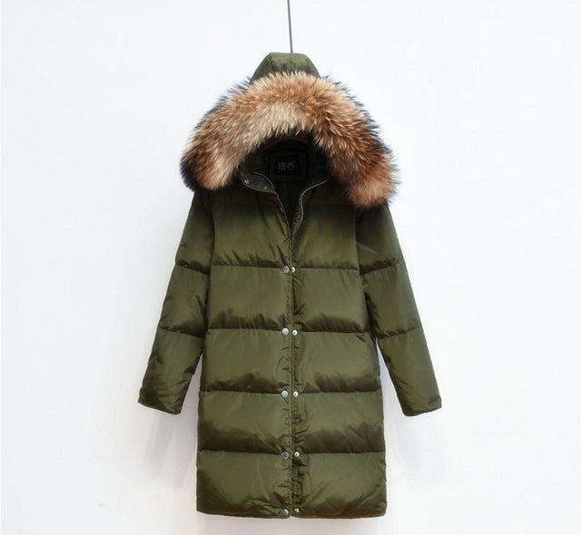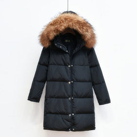Erlebe den Winter mit unserem luxuriösen langen Daunenmantel mit Kapuze, der eine ideale Kombination aus Gemütlichkeit und Wärme bietet.