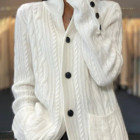 Vielseitiges Design: Mit elegantem Stehkragen und trendigen gestrickten Zopfmustern ist sie ideal für entspannte Anlässe sowie für schickere Outfits.