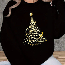 Amawinc | Jul Sweatshirt mit Print Baumwolle Goldener Weihnachtsbaum Design