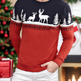 Amawinc | Weihnachtsstrickjacke mit Rentiermotiv Baumwolle Festlich