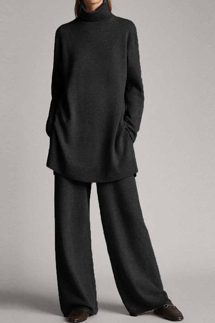 Das Amila Hoher Halsausschnitt Lose Pullover Set von ist eine perfekte Mischung aus Raffinesse und Leichtigkeit, kuratiert für den modebewussten, aber entspannten Menschen.