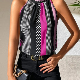 Das Arielle - Sleeveless Tank Top with Polka Dots ist ideal für einen frischen, modischen Look. Es kombiniert ein charmantes Tupfenmuster mit bequemer Passform, perfekt für Sommertage. Das leichte, atmungsaktive Material sorgt für Komfort, das Design bleibt vielseitig und trendy.
