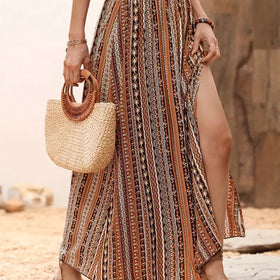 Dieser Tribal Print Maxirock für den Sommer verbindet auffälliges Design mit luftigem Tragekomfort. Das fließende Material und der bequeme Schnitt umschmeicheln die Figur, während das ethnisch inspirierte Muster für einen Hauch von Boho-Charme sorgt. Perfekt für Strandtage, Stadtbummel oder entspannte Sommerabende – dieser Rock bringt Leichtigkeit und Stil in jede Garderobe. Kombiniere ihn mit einem schlichten Top und Sandalen für einen mühelosen Look.