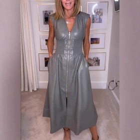 Ärmelloses PU-Lederkleid mit Reißverschluss...