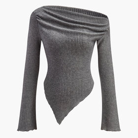 Langärmliges Oberteil mit asymmetrischem, drapiertem Ausschnitt und figurbetonter Passform. Strukturierte Strickoberfläche. Verlängerter Saum. - Elastisches Material für angenehmen Tragekomfort. - Dezente Textur.