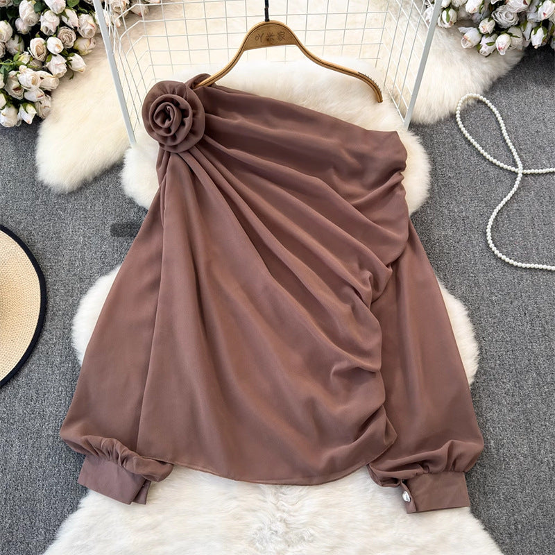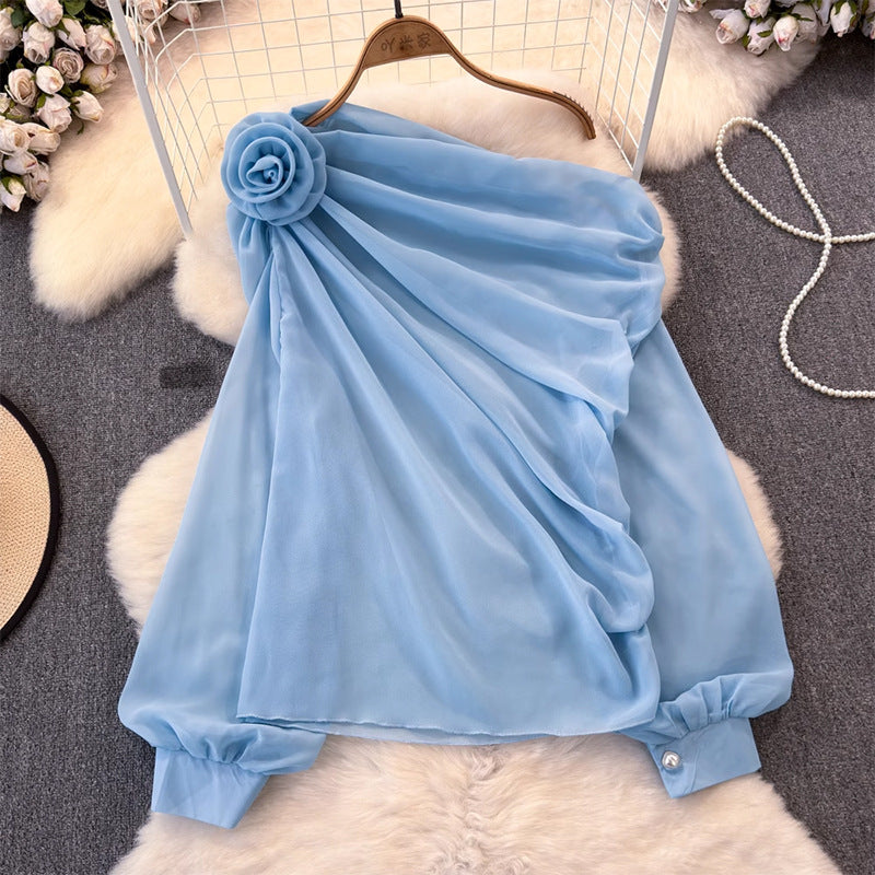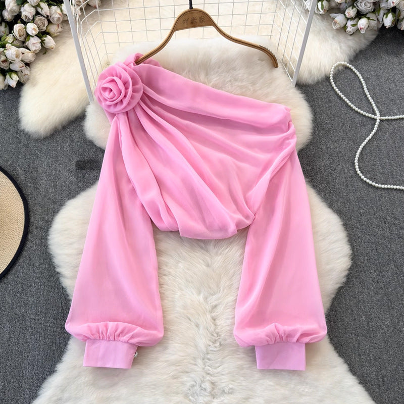 Asymmetrisches Top von Fudus, halbtransparent, einseitig geschulterter Schnitt