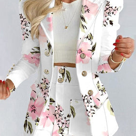 Avelena: Doppelreihiger Blazer mit Blumenmuster und Puffärmeln