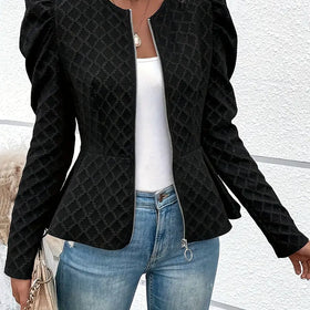 Avelena: Eleganter Blazer mit Rundhals, Reißverschluss und Puffärmeln
