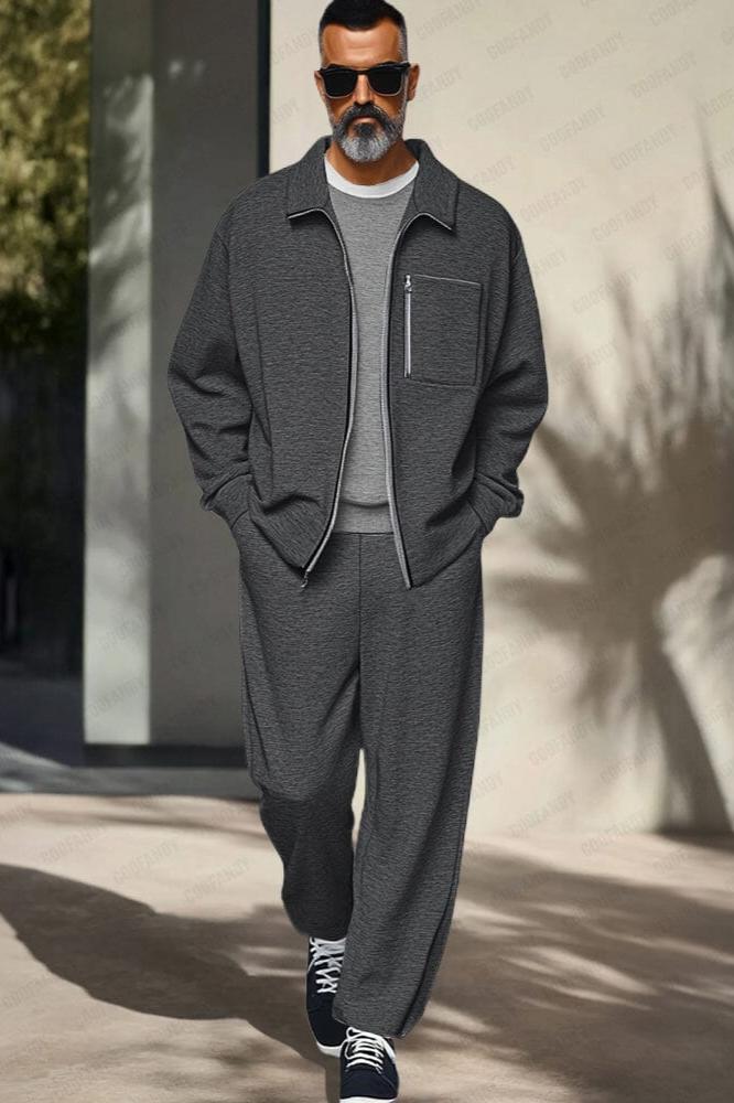 Dieses geschmackvolle Ensemble aus Jacke und Hose kombiniert zeitloses Design mit entspannter Raffinesse. Ideal für diverse Anlässe, bietet es einen modernen Look und erstklassigen Komfort. Die hochwertige Stoffmischung gewährleistet optimale Passform und angenehmes Trageerlebnis.