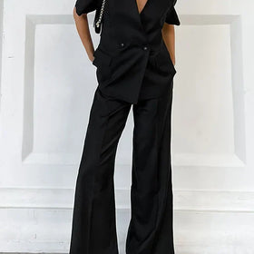 Stil und Komfort vereint: Dieses 2-teilige Set mit weitem Schnitt besteht aus einem Kurzarmblazer und einer hochtaillierten, weiten Hose. Perfekt für Büro, Events oder Abendveranstaltungen.