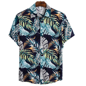 Baumwoll-Leinen Hemd für Herren mit Druck, kurzärmelig
