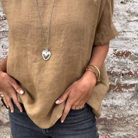Baumwoll-Leinen Bluse mit rundem Ausschnitt und 3/4-Ärmeln