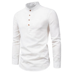 Baumwoll-Leinen Hemden mit Stehkragen...