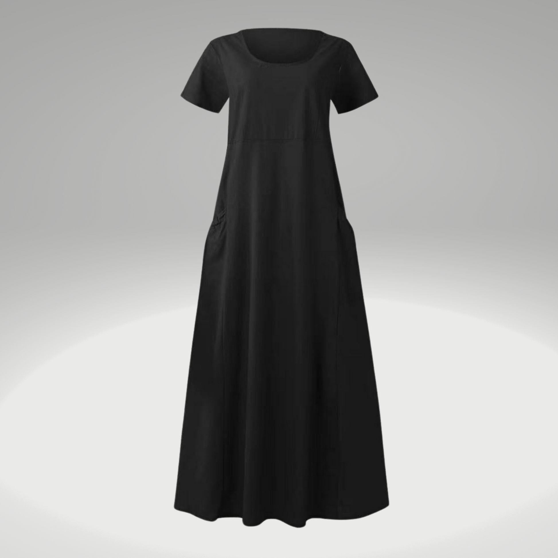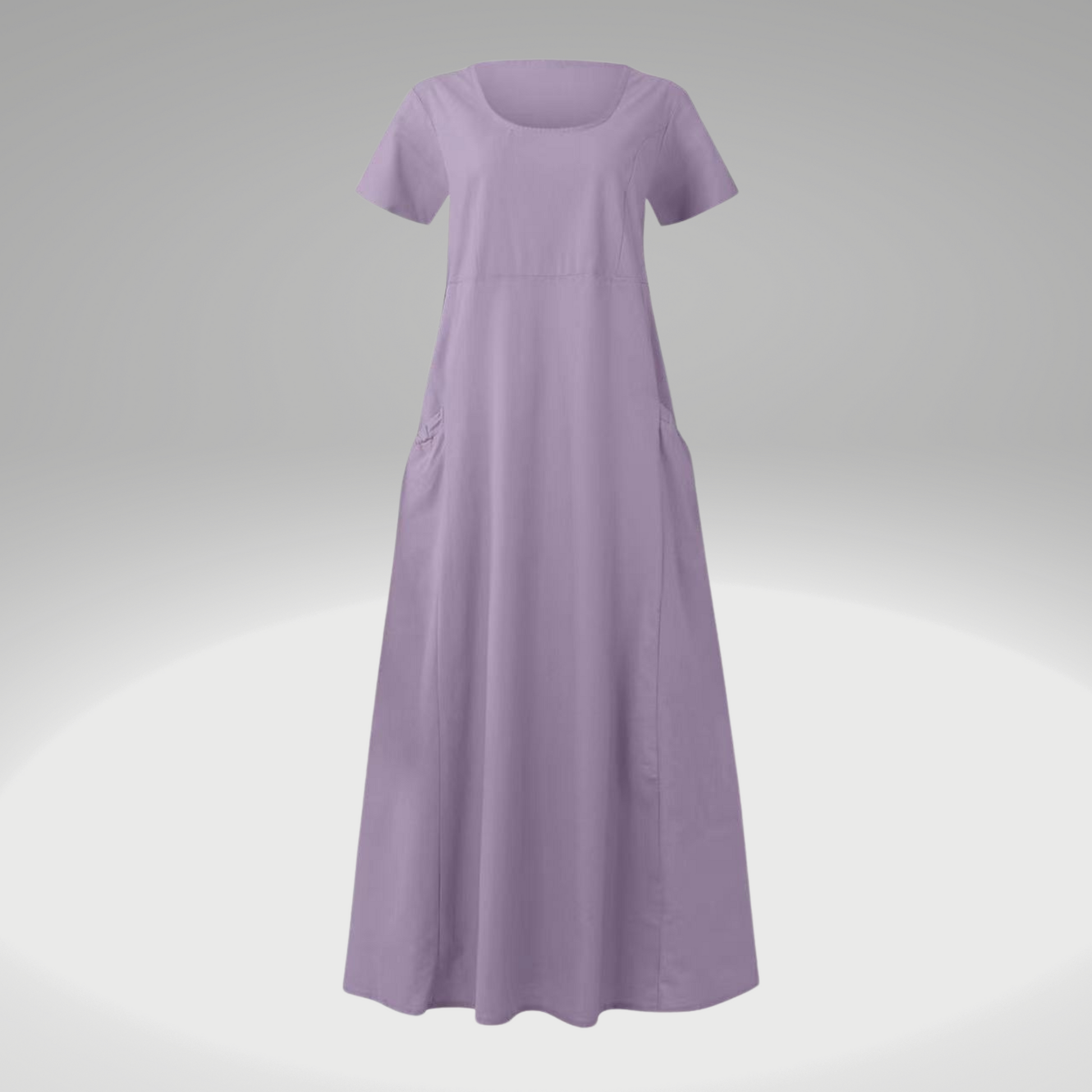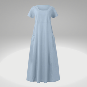 Das Alina Taschenkleid: lässig, schick, aus hochwertiger Baumwolle und Leinen. Lockerer Schnitt für angenehmen Tragekomfort, ideal für den Sommer. Unifarben und zeitlos elegant. - Praktische Taschen. - Perfekt für komfortbewusste, stilvolle Frauen.