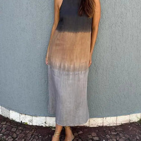 Das Lucile®-Kleid: Stilvoll die Sommersaison genießen! Elegantes Vintage-Kleid aus hochwertiger Baumwoll-Leinen-Mischung. Ärmellos, entspannte Passform, ideal für den Strand. - Farbverlaufsdruck. - O-Ausschnitt.
