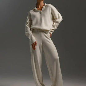 Ergänzen Sie Ihre Garderobe mit diesem luxuriösen und komfortablen Polo-Oberteil mit weitbeiniger Hose. Dieses attraktive Set ist ein absolutes Must-have, aus ultra-weichem und bequemem Stoff gefertigt, ideal für entspannte Stunden zuhause und stylische Ausflüge.
