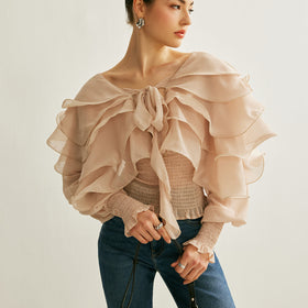 Chiffon Top mit Rüsche, halbtransparenter Rücken