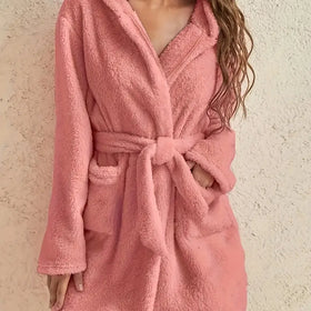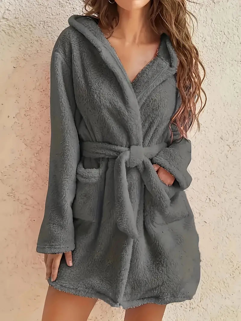 Clianneth: Edler, offener, gegürteter Fuzzy-Mantel in Uni – für jeden Anlass