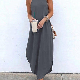 Unser beliebtes langes ärmelloses Kleid vereint Komfort mit Eleganz. Die fließende Passform und das zeitlose Design machen es zum perfekten Begleiter für jede Gelegenheit. Ideal für warme Tage oder stilvolle Auftritte, stets bequem und chic.