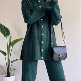 Das Dagmar-Set vereint Eleganz und Komfort und ist ein Must-have für die kalte Jahreszeit. Hochwertige Materialien und eine schmeichelhafte Passform machen es perfekt für jede Gelegenheit – von entspannten Tagen bis zu eleganten Anlässen.