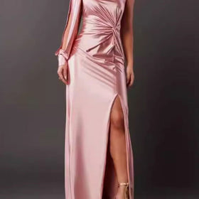 Damen Abendkleid mit asymmetrischem Ausschnitt und eleganter Faltenlegung Amawinc