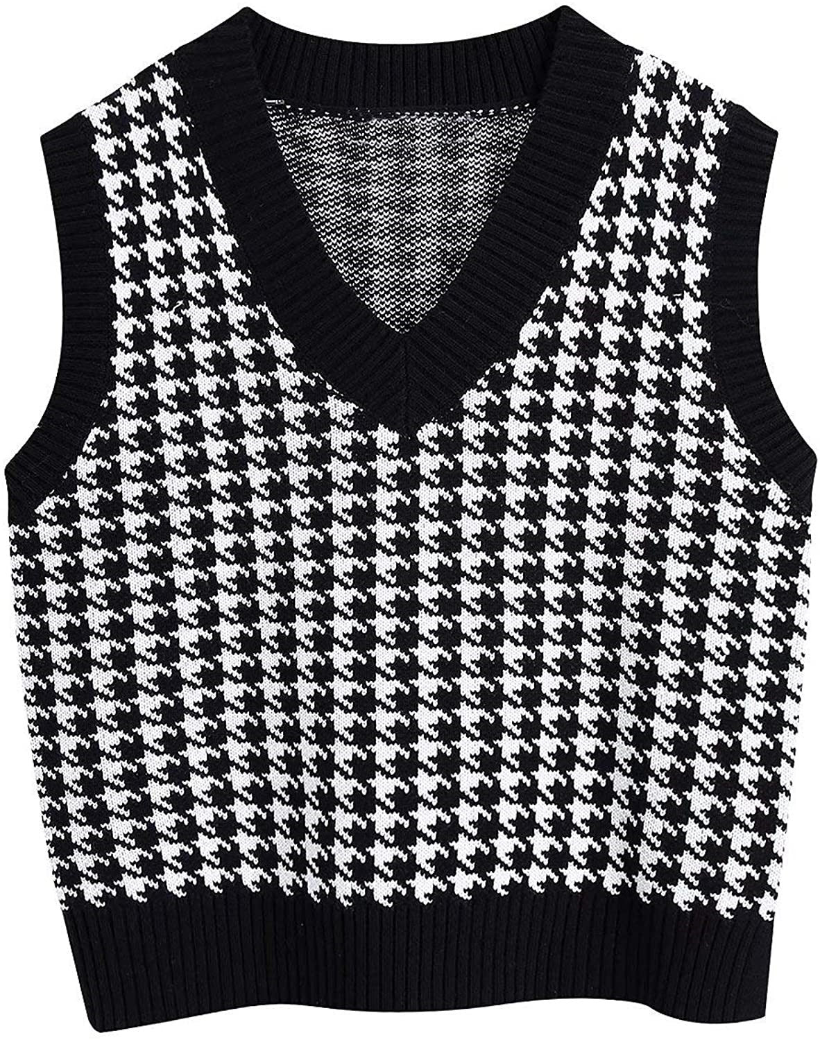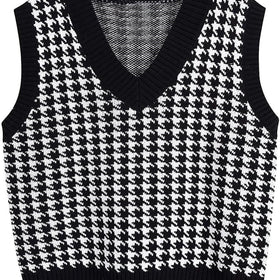Damen ärmellose Strickweste mit modernem Hahnentrittmuster Amawinc