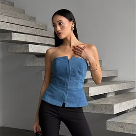 Entdecken Sie die stilvolle Damen ärmellose Denim-Top mit Reißverschluss von Amawinc, die sowohl lässig als auch schick ist und sich perfekt für verschiedene Anlässe eignet.