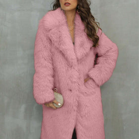 Damen Bequemer Kunstpelzmantel mit luxuriösem Revers Amawinc