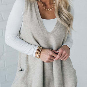 Damen Bequemer Strick-Poncho mit seitlichen Taschen Amawinc