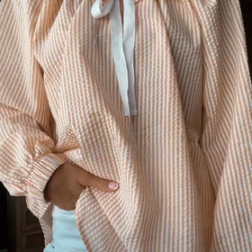 Entdecken Sie die perfekte Kombination aus Stil und Komfort mit dieser einzigartigen Damenbluse von Amawinc. Die Bluse zeichnet sich durch einen elastischen Ausschnitt aus, der sowohl einen modischen als auch bequemen Sitz garantiert. Der dekorative Schleifenverschluss sorgt für eine feminine Note und lässt sich leicht anpassen.
