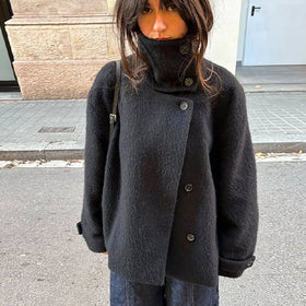 Damen cozy Wolljacke mit hohem Kragen und Knopfdetails Amawinc